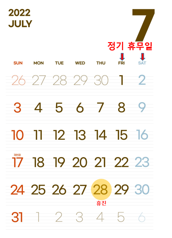 7월 진료일정입니다.