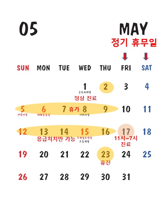 5월 진료 일정입니다.