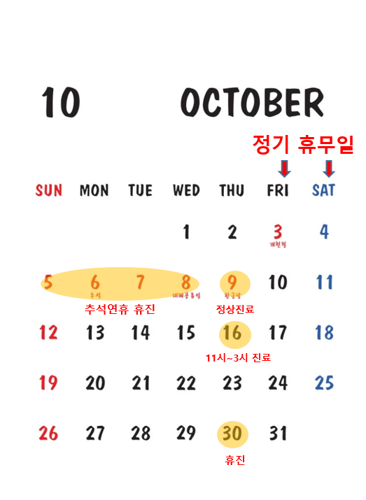 10/9일 한글날 11시~7시 정상진료 합니다.