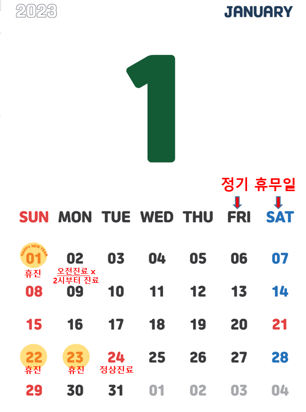 안녕하세요 ~ 2023년 1월 진료 일정 안내해드립니다.