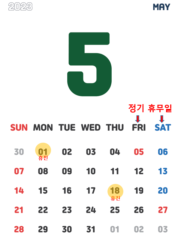 5월 29일 월요일 대체공휴일은 정상 진료 입니다.