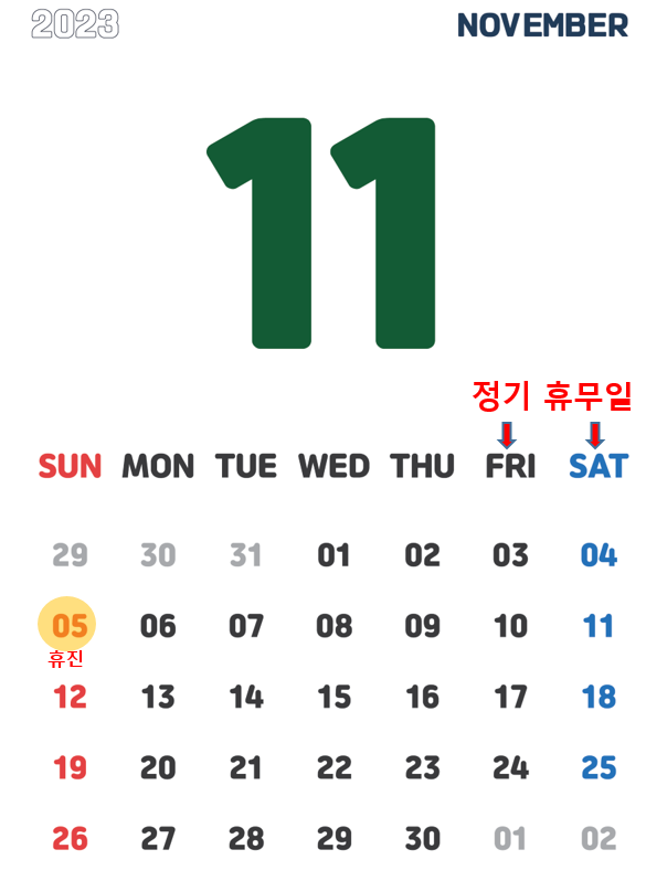11월 5일 일요일은 휴진입니다.
