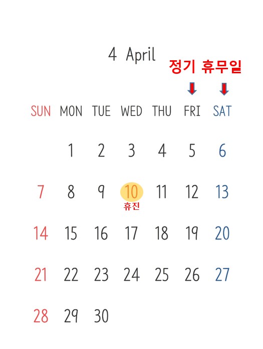 4월 10일은 국회의원 선거일로 휴진입니다.